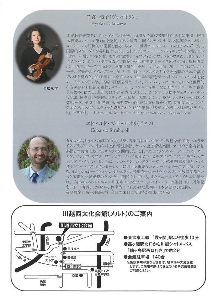 公益財団法人 川越市施設管理公社 V Twitter 川越西文化会館 本日 11月4日午後2時 竹澤恭子 ヴァイオリンリサイタル 開催 世界で活躍する Kyoko Takezawa が川越で演奏 使用楽器はストラディヴァリウス サマズィユ です 当日券もお買い求めになれます