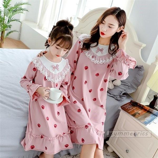 パジャマ 親子 お揃い パジャマ ワンピース パジャマ キッズ 女の子 パジャマ レディース 大人 ルームウェア 長袖 秋 子供服 薄手 110 160cm M L Ly147 Symmetrics 通販 Yahoo ショッピング
