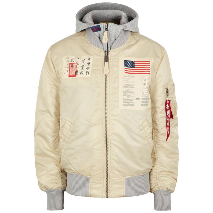Alpha Industries Ma 1 D Tec Blood Chit Shell Bomber Jacket In Vintage White Modesens