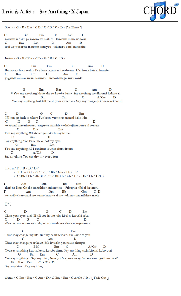 คอร ด เน อเพลง Say Anything X Japan Chordza คอร ดเพลง คอร ดก ต าร เน อเพลง เพ อท กท านท ม ดนตร ในห วใจ